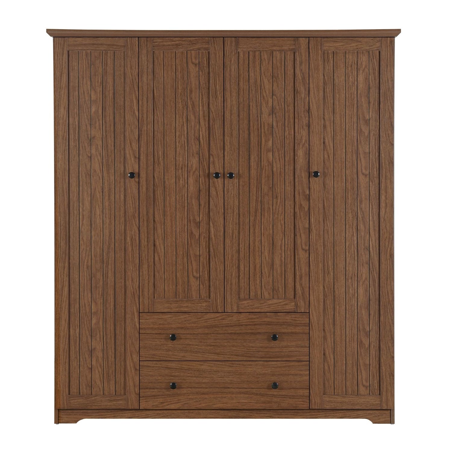 Wardrobe Armoire With 4 Doors, 2 Drawers - Brown