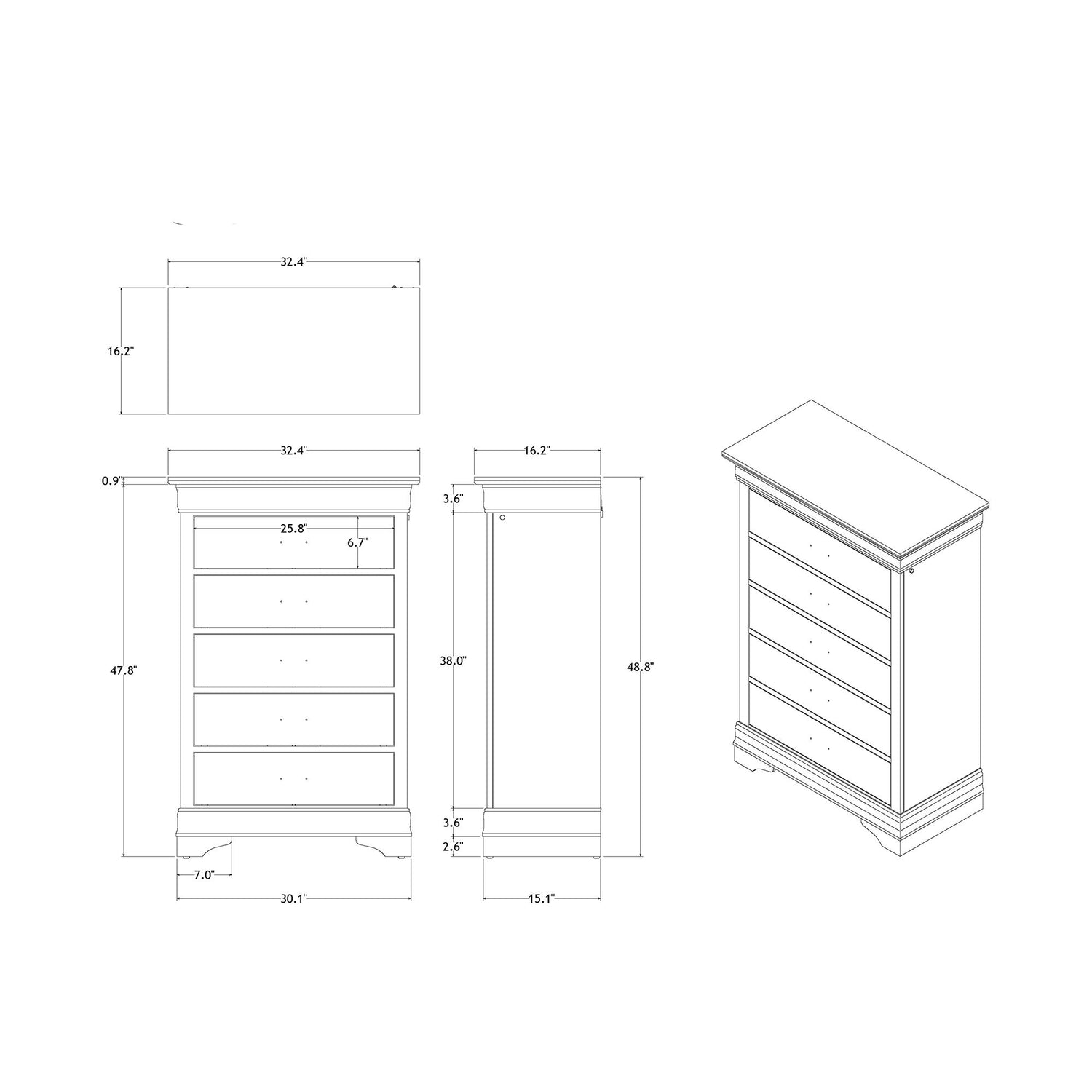 Charlston - Queen Bedroom 5 Piece Set With Sleigh Bed And LED Lighting - White