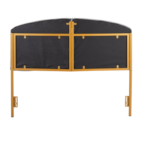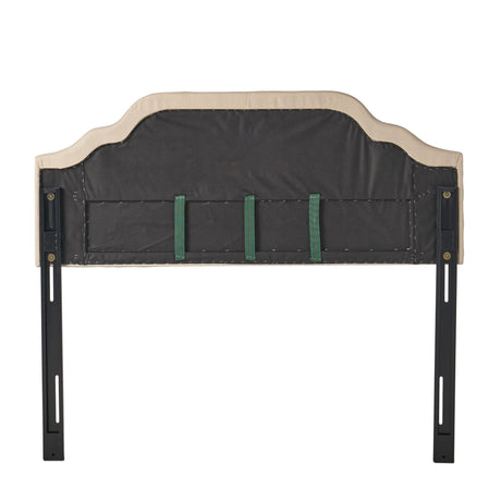 Elegant Panel Headboard With Copper Nailheads And Adjustable Metal Legs