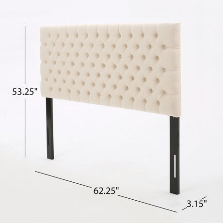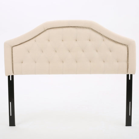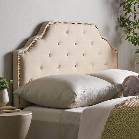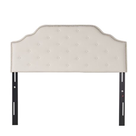 Queen & Full Size Headboard With Diamond Tufting And Nailhead Trim - Beige