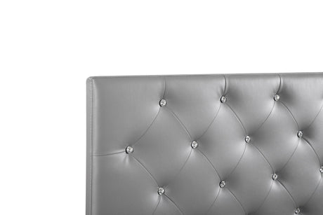 Queen Size Tufted Upholstered Headboard With Nailhead Trim - Gray