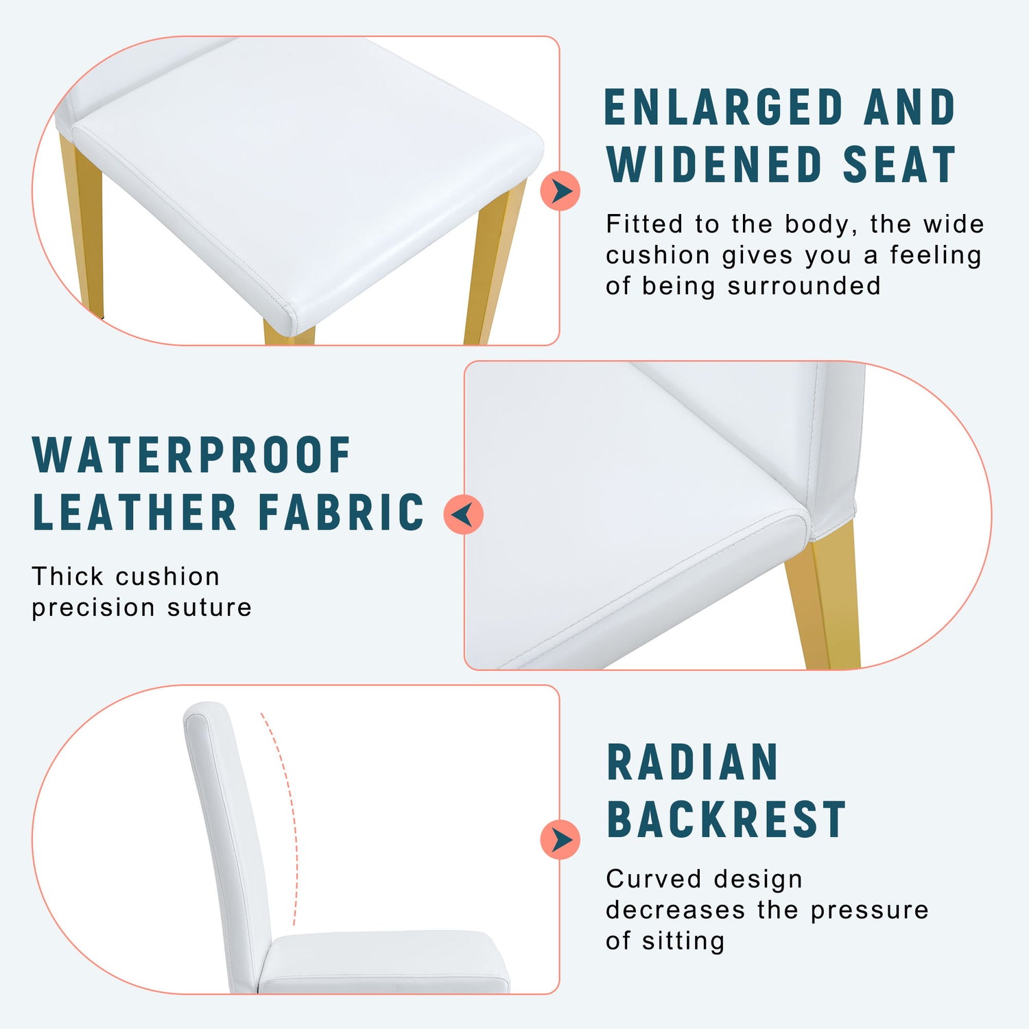 (Set of 4) Backrest Chairs With Gold Metal Legs A Perfect Match, Suitable For Minimalist And Contemporary Home Decor Styles - White / Gold