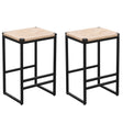 Boho Style Backless Bar Stools (Set of 2) With Paper Rope Woven Seat & Metal Frame For Kitchen Counter