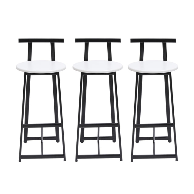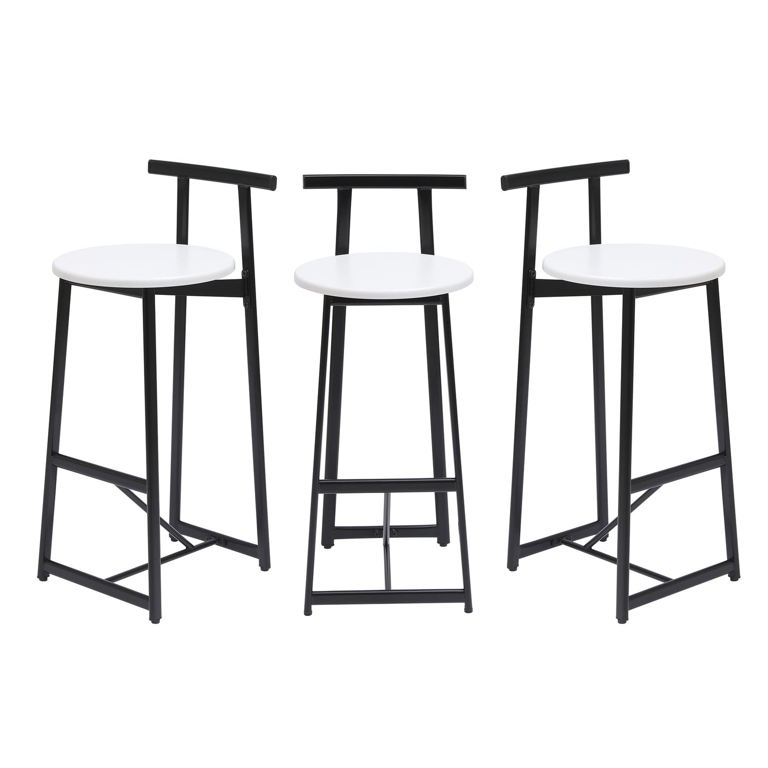 Modern Bar Stools With Backrest For Kitchen Island Or Pub Room, Metal Frame (Set of 3) - Black / White
