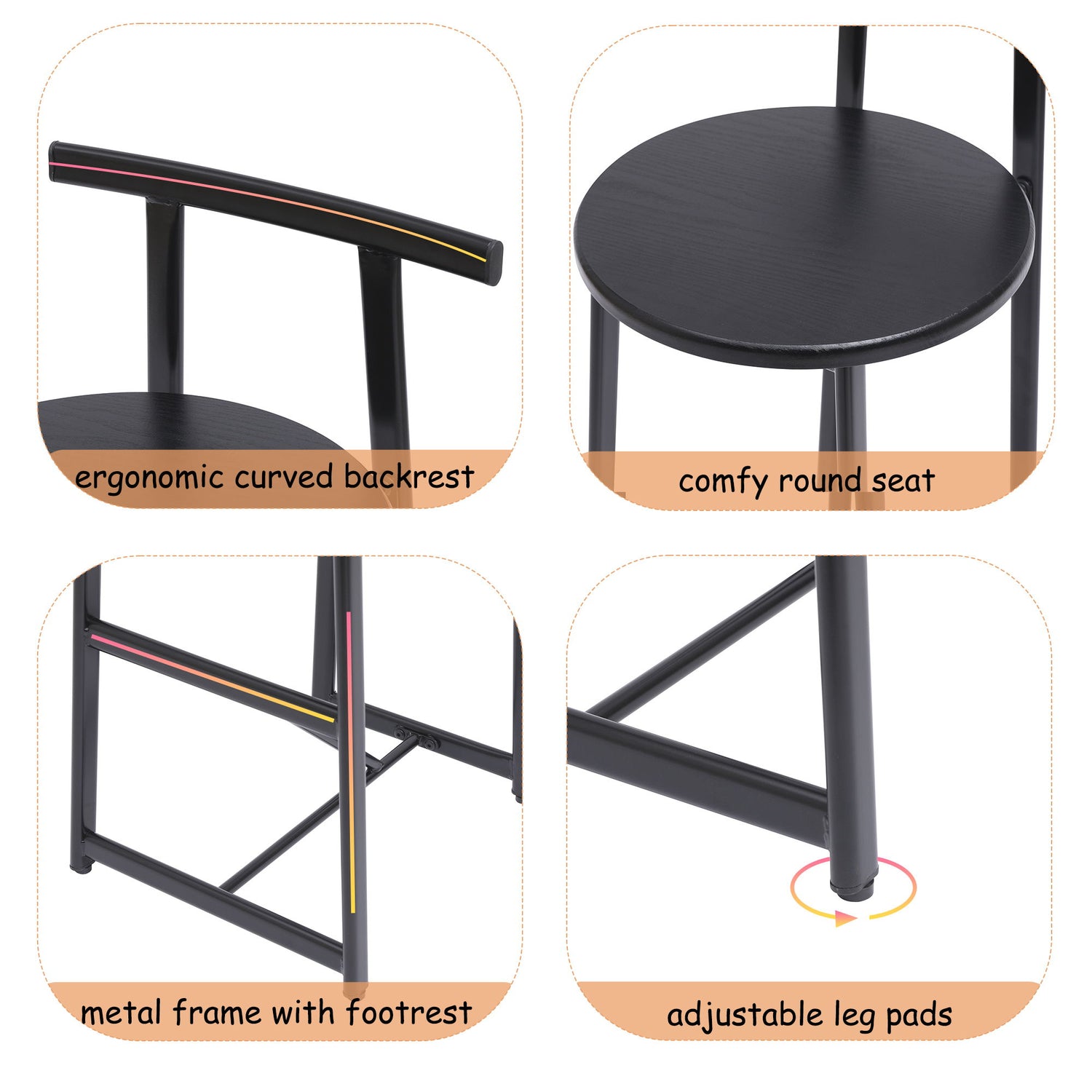 Modern Kitchen Bar Stools (Set of 3) With Footrest - Black