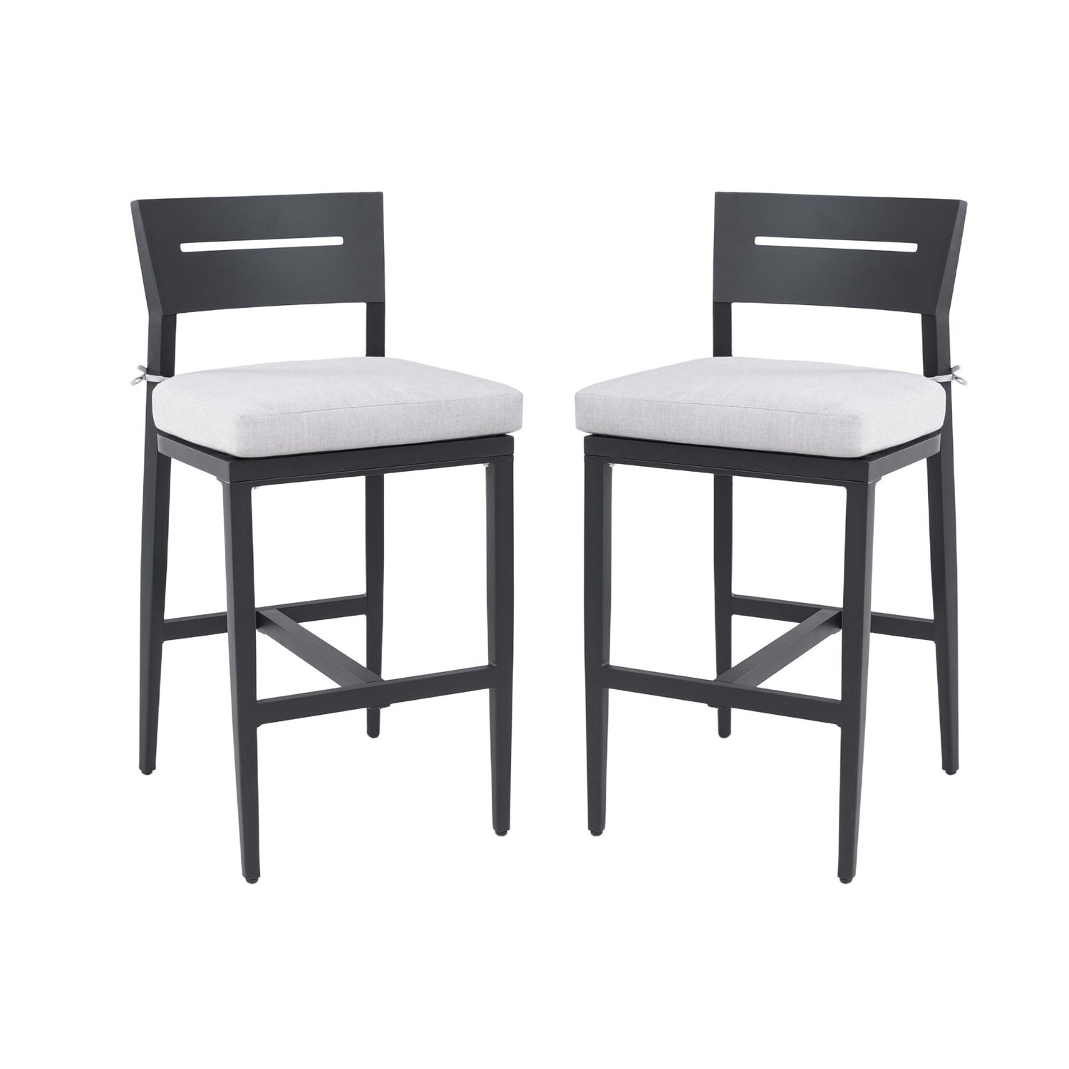 Outdoor Bar Stools With Backrest And Footrest, Weather Resistant (Set of 2) - Ember Black / Linen Sesame