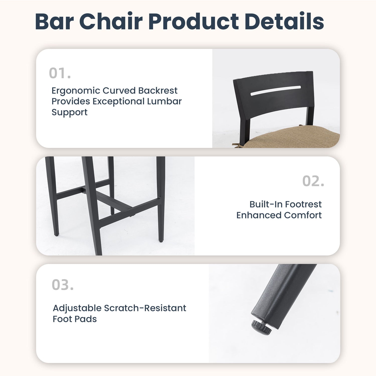 - Tapered Legs with Footrest: Bold modern profile adds visual appeal; built-in bar provides posture support and foot comfort