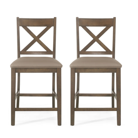 Farmhouse Upholstered Wood Counter Stools