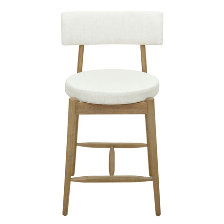 Counter Stool With Swivel Seat, Upholstery And Solid Wood Legs - Cream