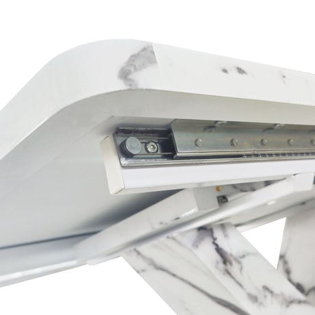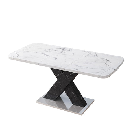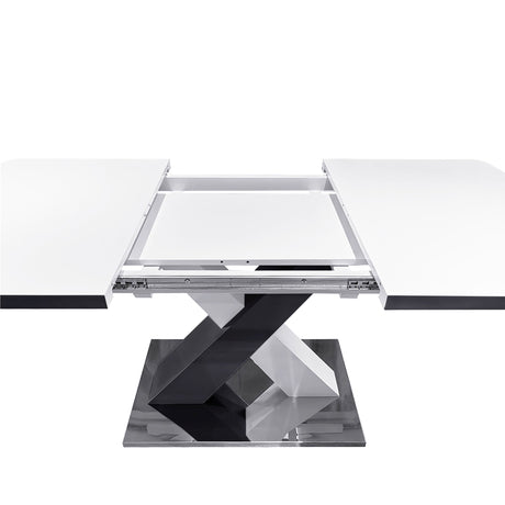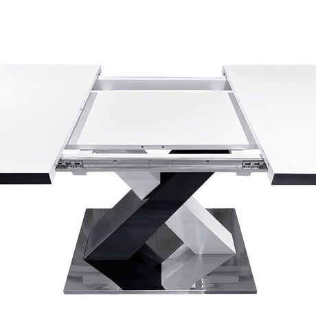 Rectangle Dining Table With Stretchable Top, X Shape Mdf Legs With Steel Base - White / Black