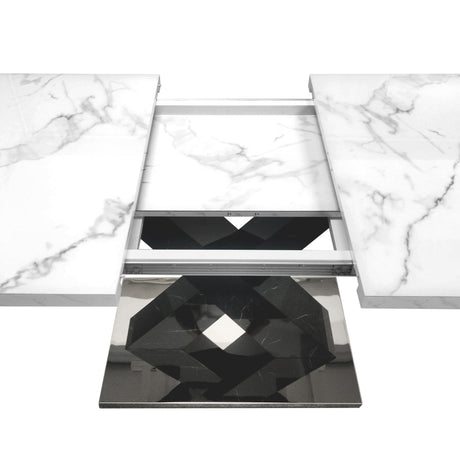 Rectangle Dining Table, Stretchable, Table Top With X Shape And Legs And Base - White / Black