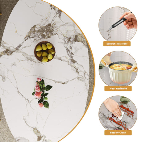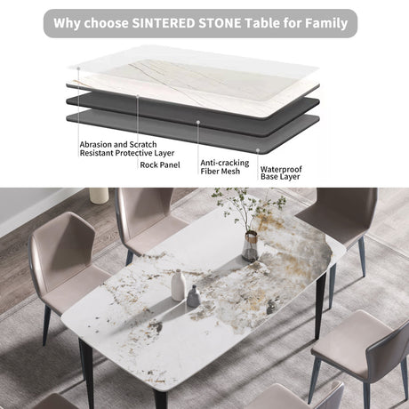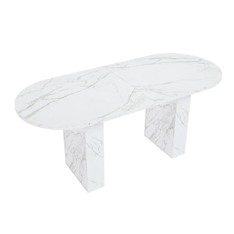 Modern Artificial Stone Pandora Curved Leg Dining Table 6 People - Antique White