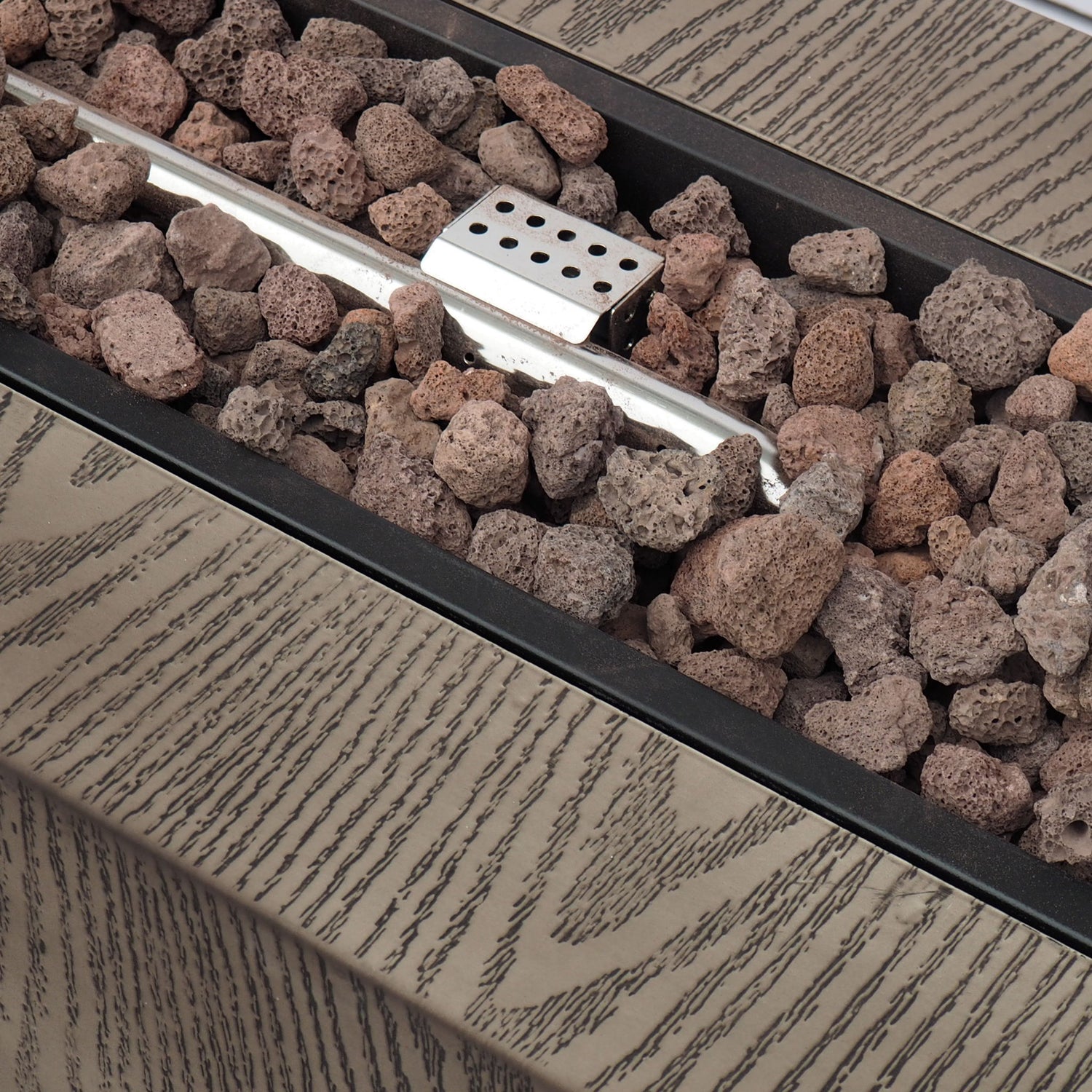 Outdoor 48" Rectangular Iron Propane Fire Pit With 50, 000 Btu - Brown Wood Pattern