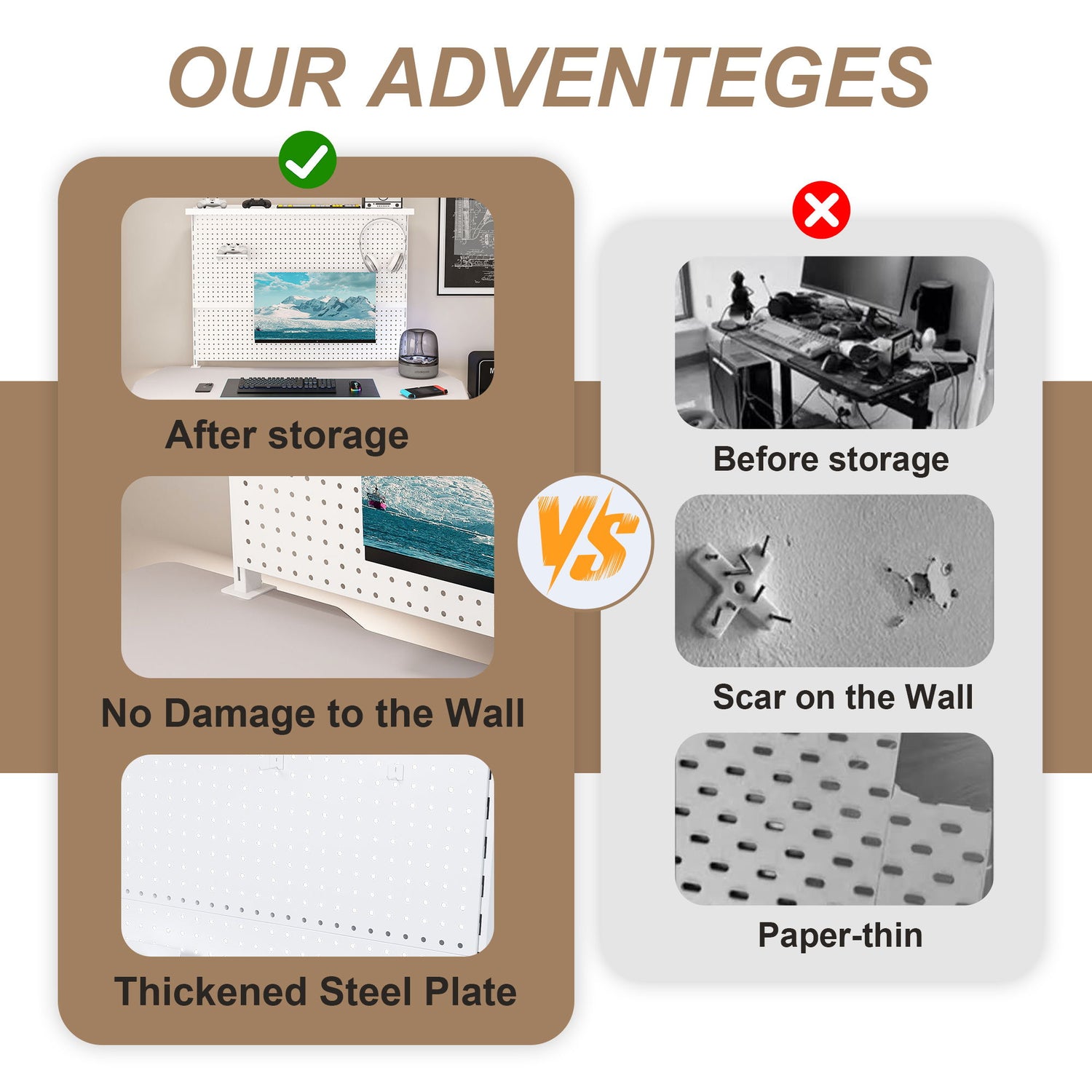 Pegboard Desk Organizer With Dual Monitor Stand, 3 Accessories - White