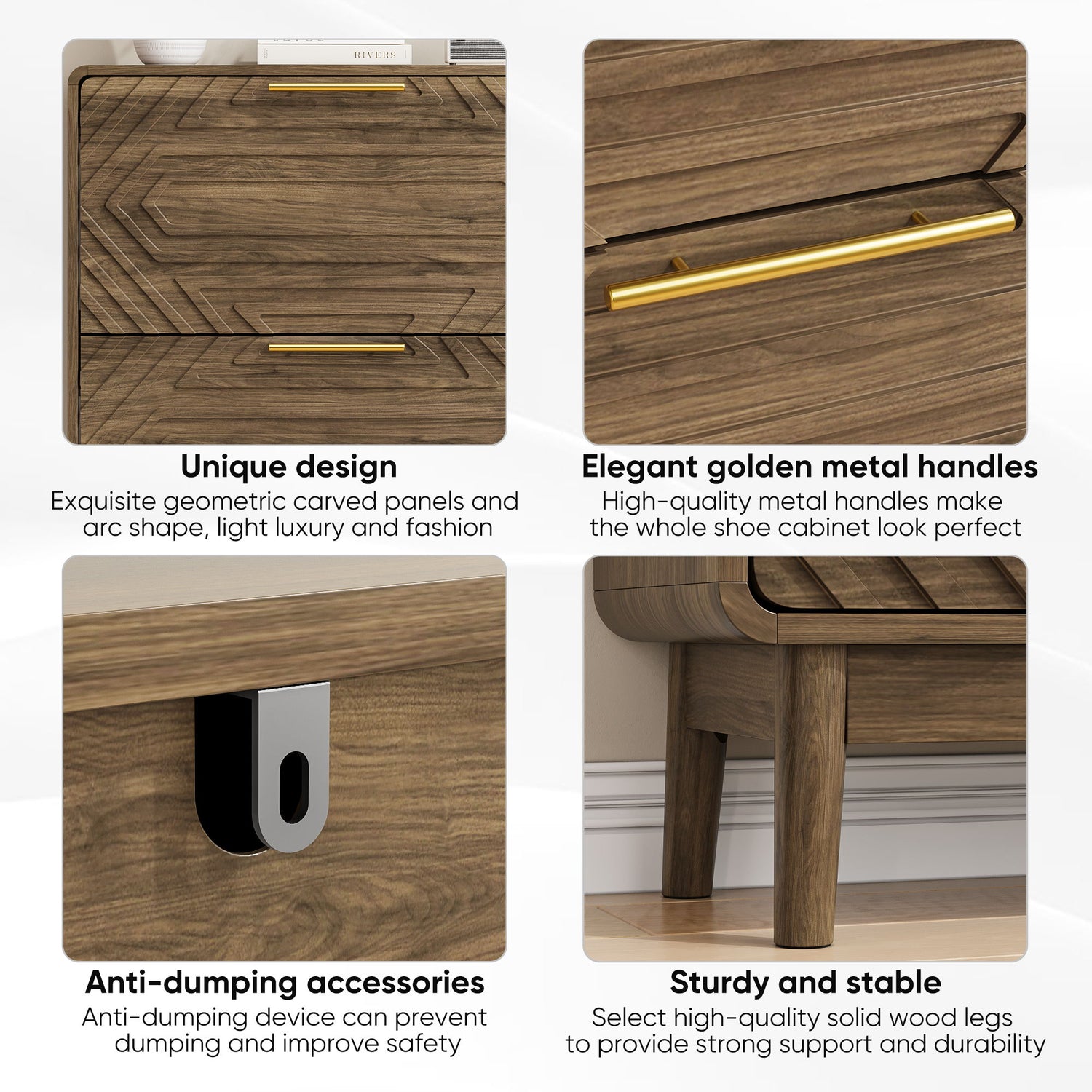 Freestanding Shoe Cabinet With 2 Flip Top Drawers For Entryway - Walnut