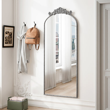 Full Body Arched Mirror With Vintage Carved Applique