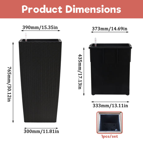 Large Self Watering Flower Pot With Drainage Holes & Inner Tray