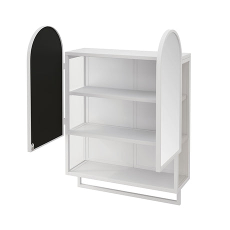 Double Arched Mirror Wall Cabinet With 2 Doors, Featuring Adjustable Shelves And Towel Rack