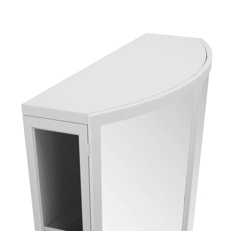 Arched Glass Double Door Wardrobe With Shatterproof Mirror, Open Shelf & Towel Rack