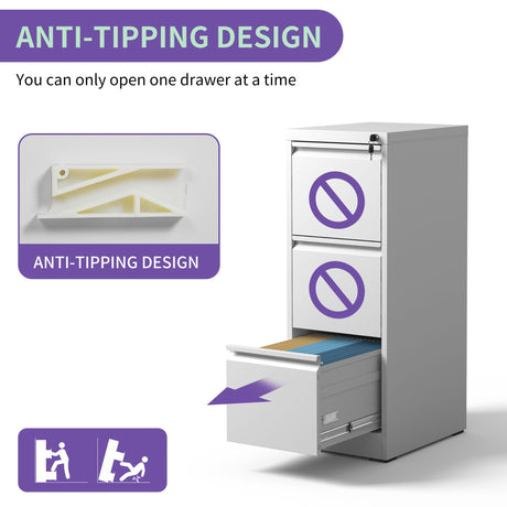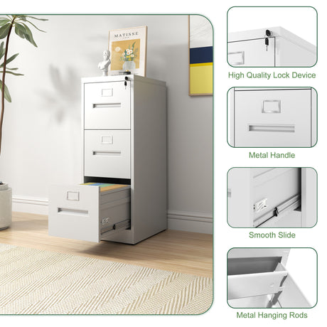 Durable Metal 3 Drawer File Cabinet With Lock For Office Storage