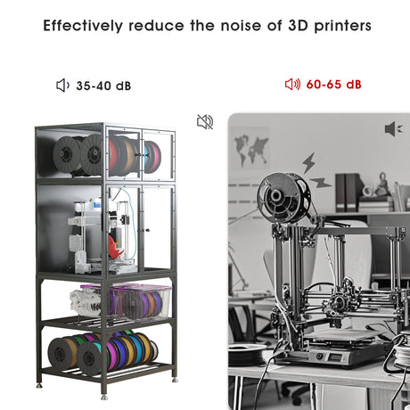 3D Printer Cabinet With Double Layer Filament Storage, Noise Reducing Design - Black