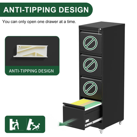 Drawer Metal Locking Vertical File Cabinet With Wheels Heavy Duty Lockable Storage