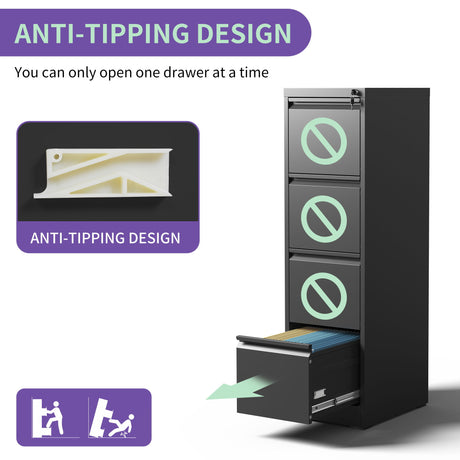 Premium Drawer File Cabinet With Lock, Metal Vertical Design, A4 Legal / Letter Size