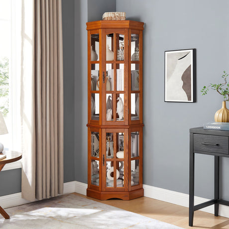 Corner Curio Cabinet With 5 Shelves And Lighting System (E26 Light Bulb Not Included)