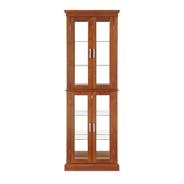 Curio Cabinet Lighted Curio Diapaly Cabinet With Adjustable Shelves And Mirrored Back Panel, Tempered Glass Doors 6 Tier, (E26 Light Bulb Not Included) - Cherry