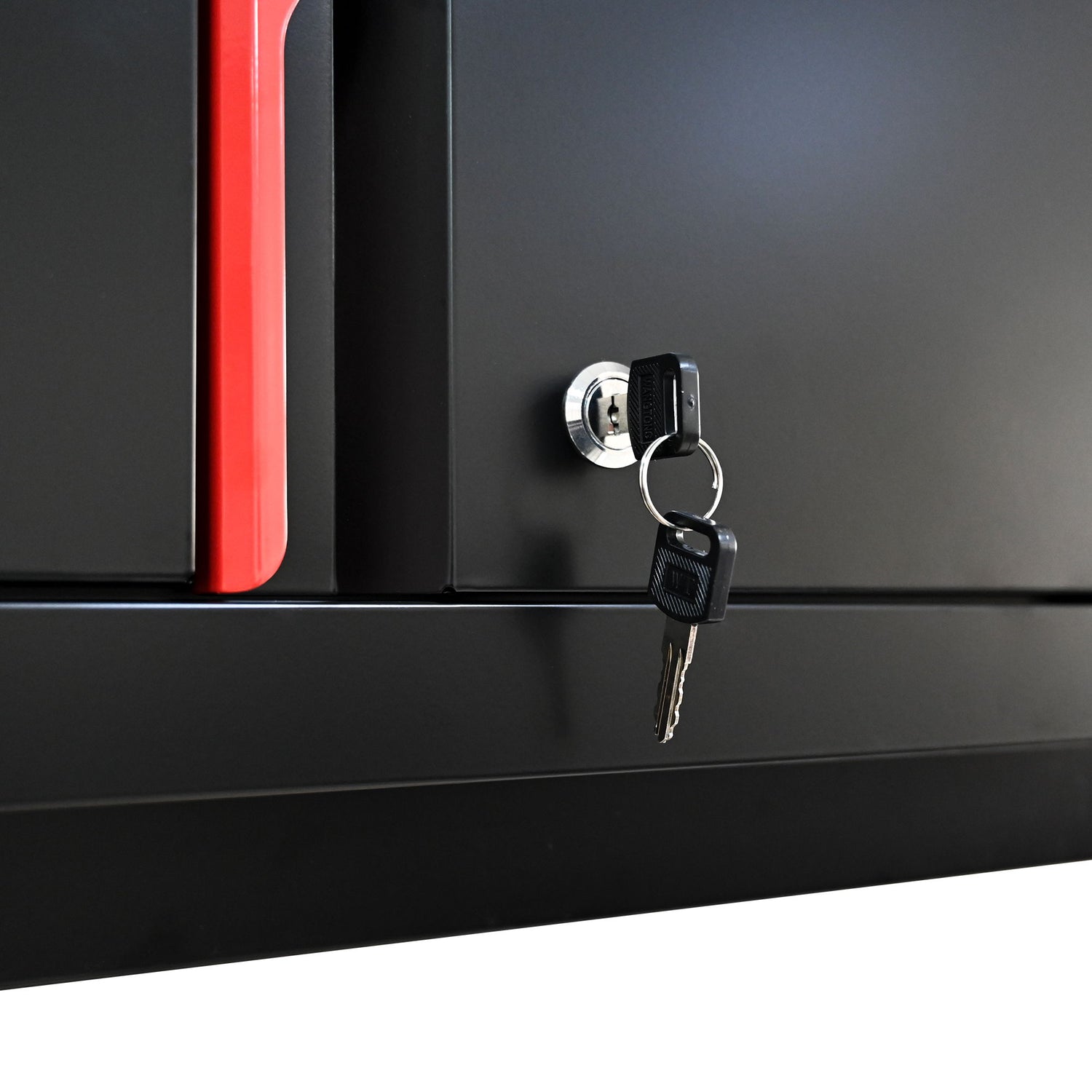 Steel Filing Cabinet With Compartments For Office Use, Storage, File Storage, Archives, And High And Low Cabinets - Black / Red