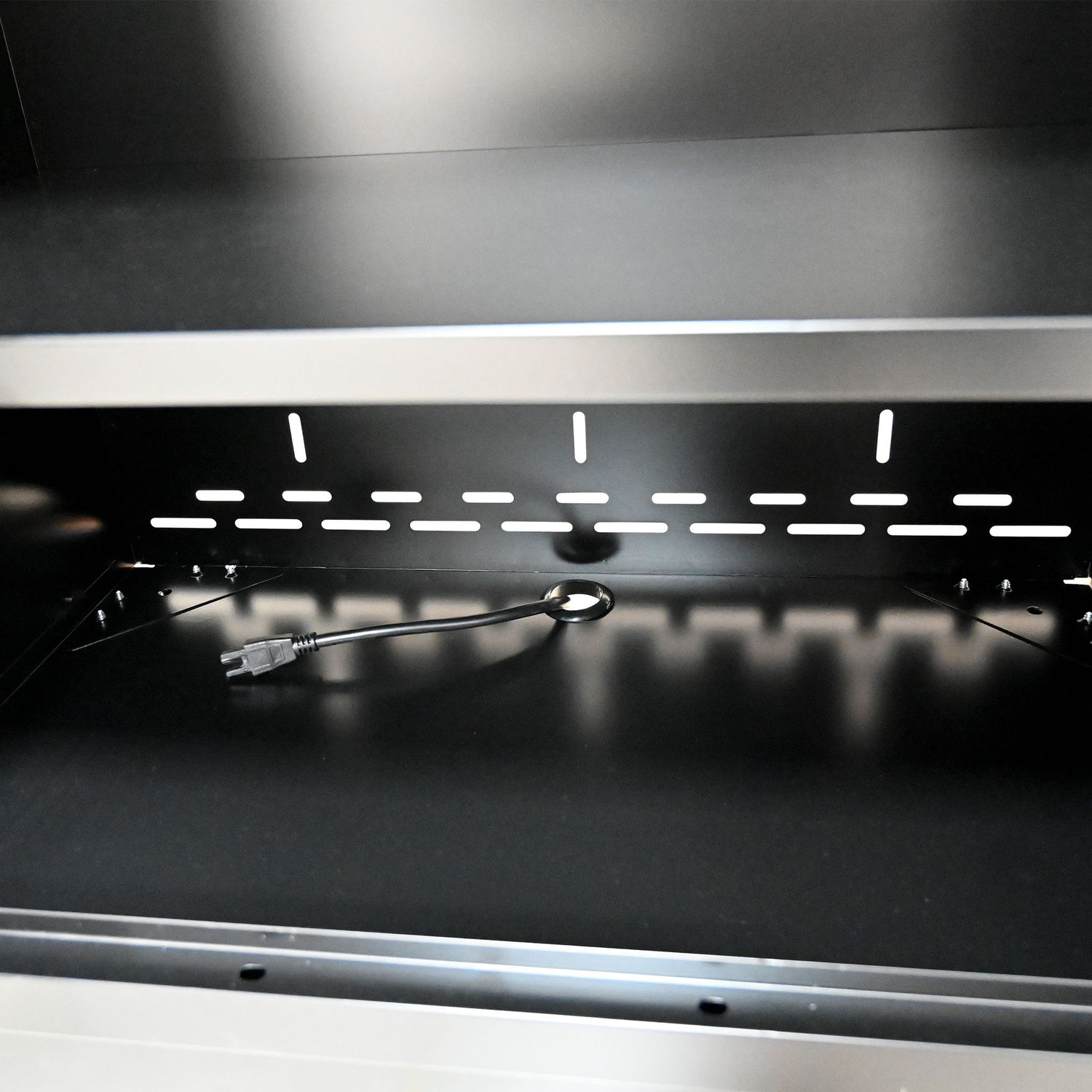 - Adjustable Utility Features: Includes leveling legs for uneven floors and pre-cut holes with rubber grommets for easy power access.