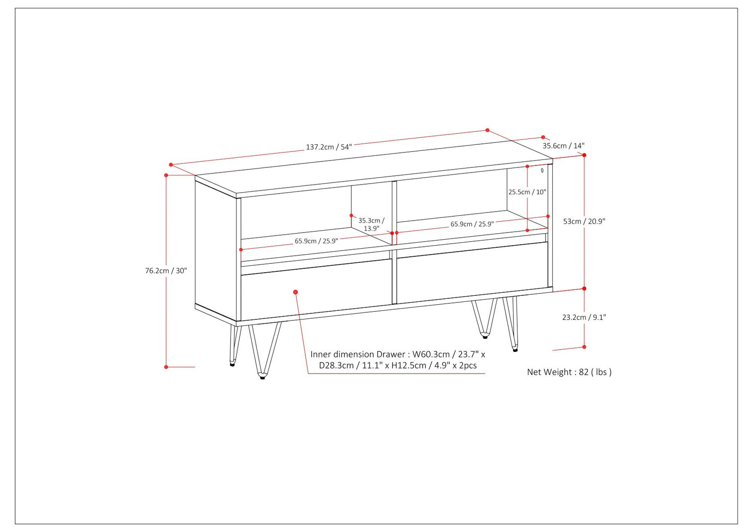 53.9"W x 14.0"D x 30.0"H - 63.9 lb