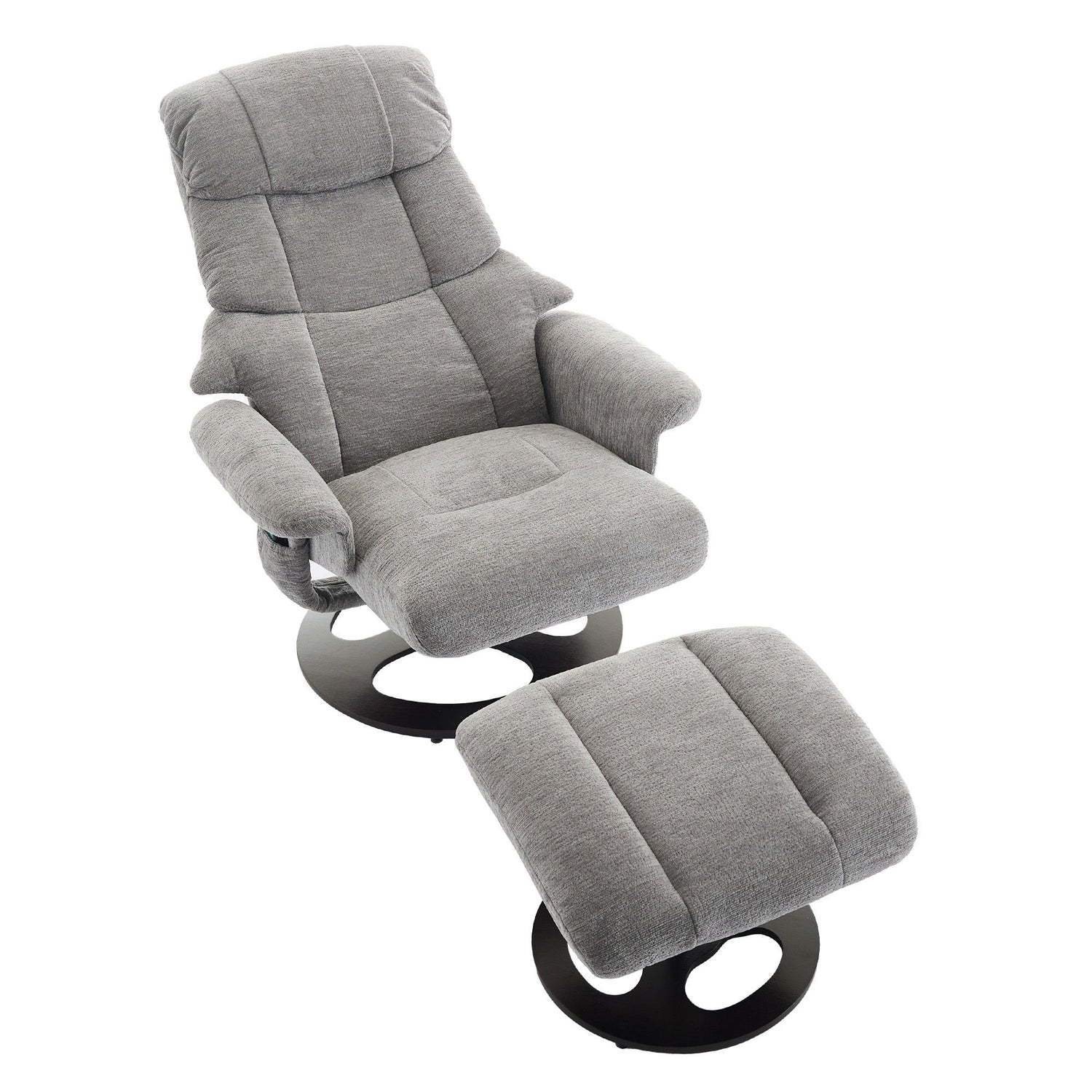 Recliner Chair With Ottoman Modern 360° Swivel Lounge Chair With Footstool Chenille Fabric 5 Point Vibration Massage Seat Heating & 140° Adjustable Backrest - Gray