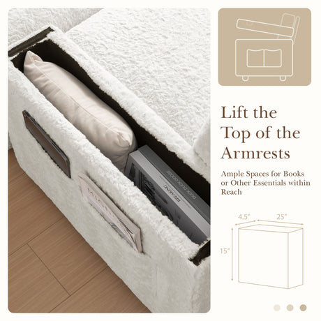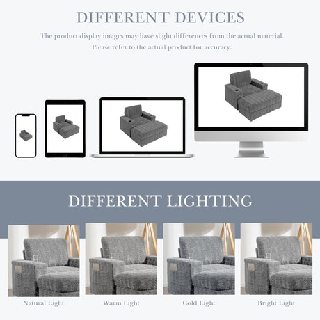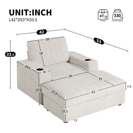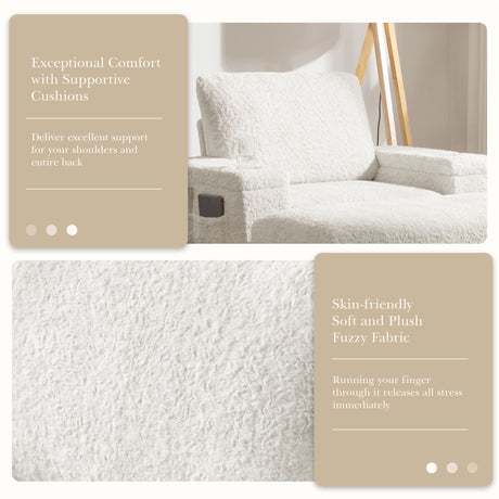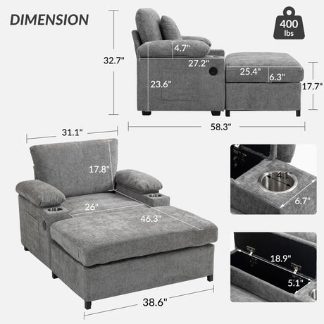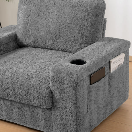 Chenille Fabric Sofa Bed With Cupholders And USB Charging Ports Chair For Living Room