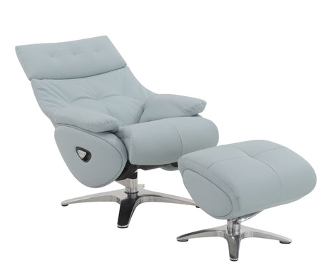 Janella - Top Grain Leather Accent Chair With Swivel & Ottoman - Baby Blue