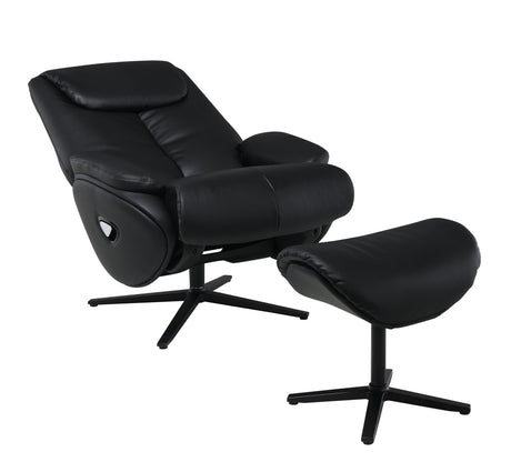 Labotina - Top Grain Leather Accent Chair With Swivel & Ottoman - Black