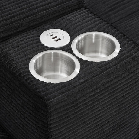 Reclining Power Set, USB, LED, Bookshelf Arms, And Drop Down Table