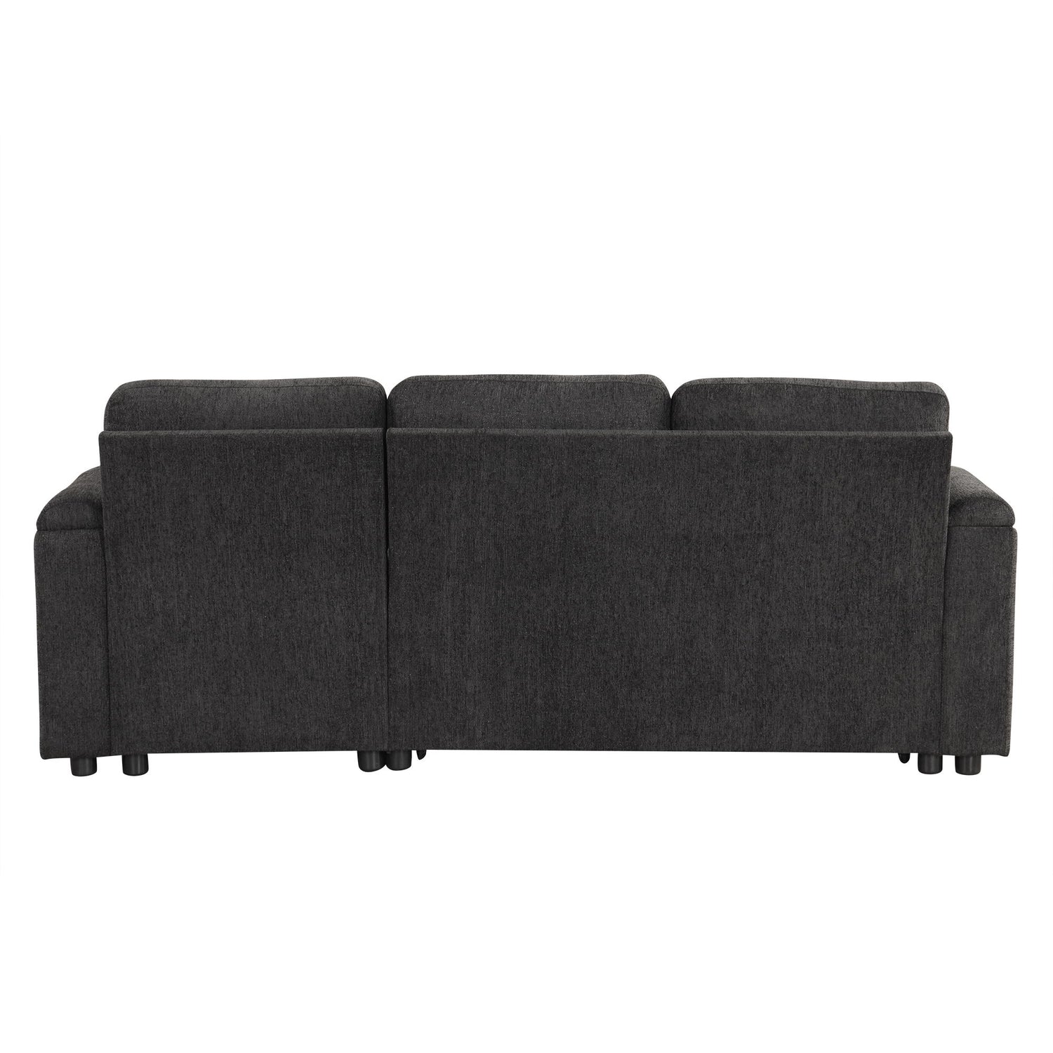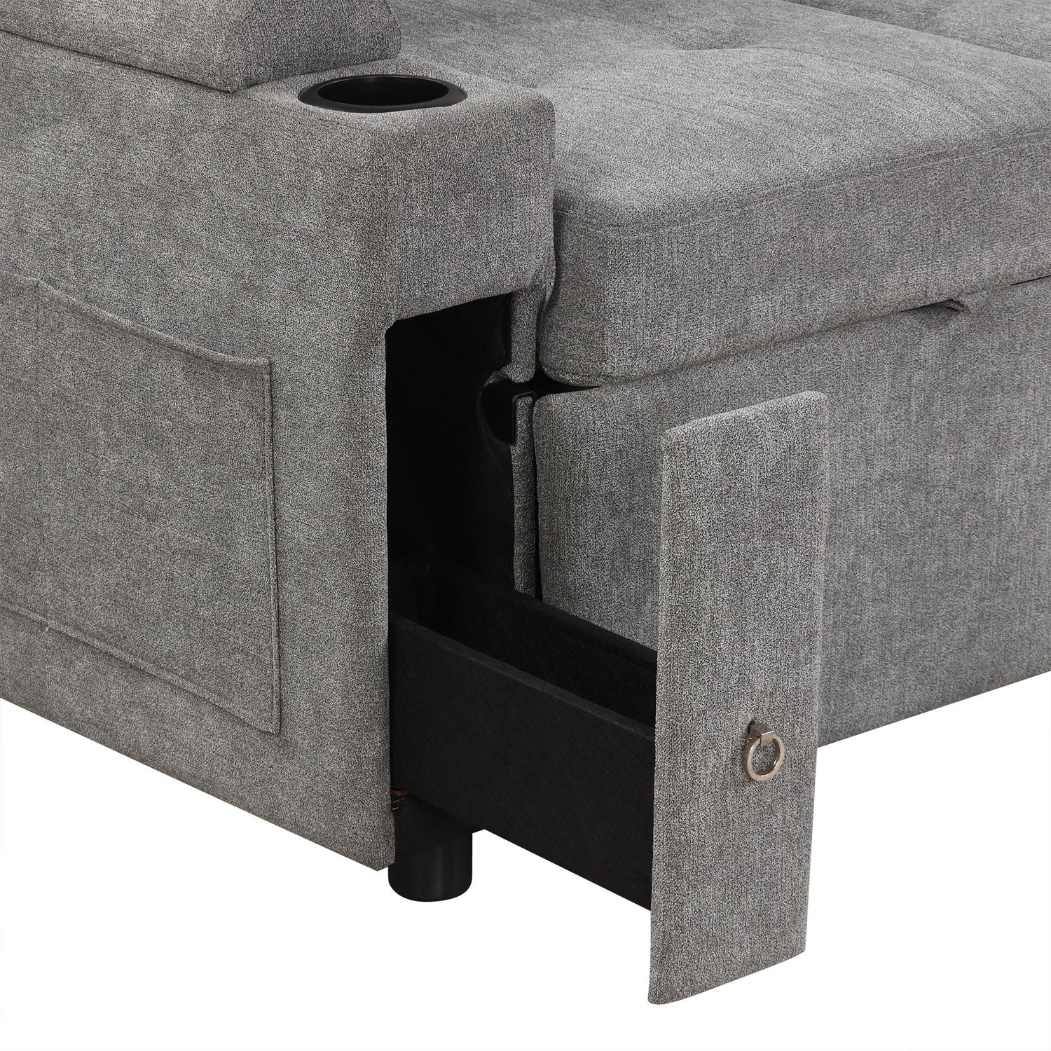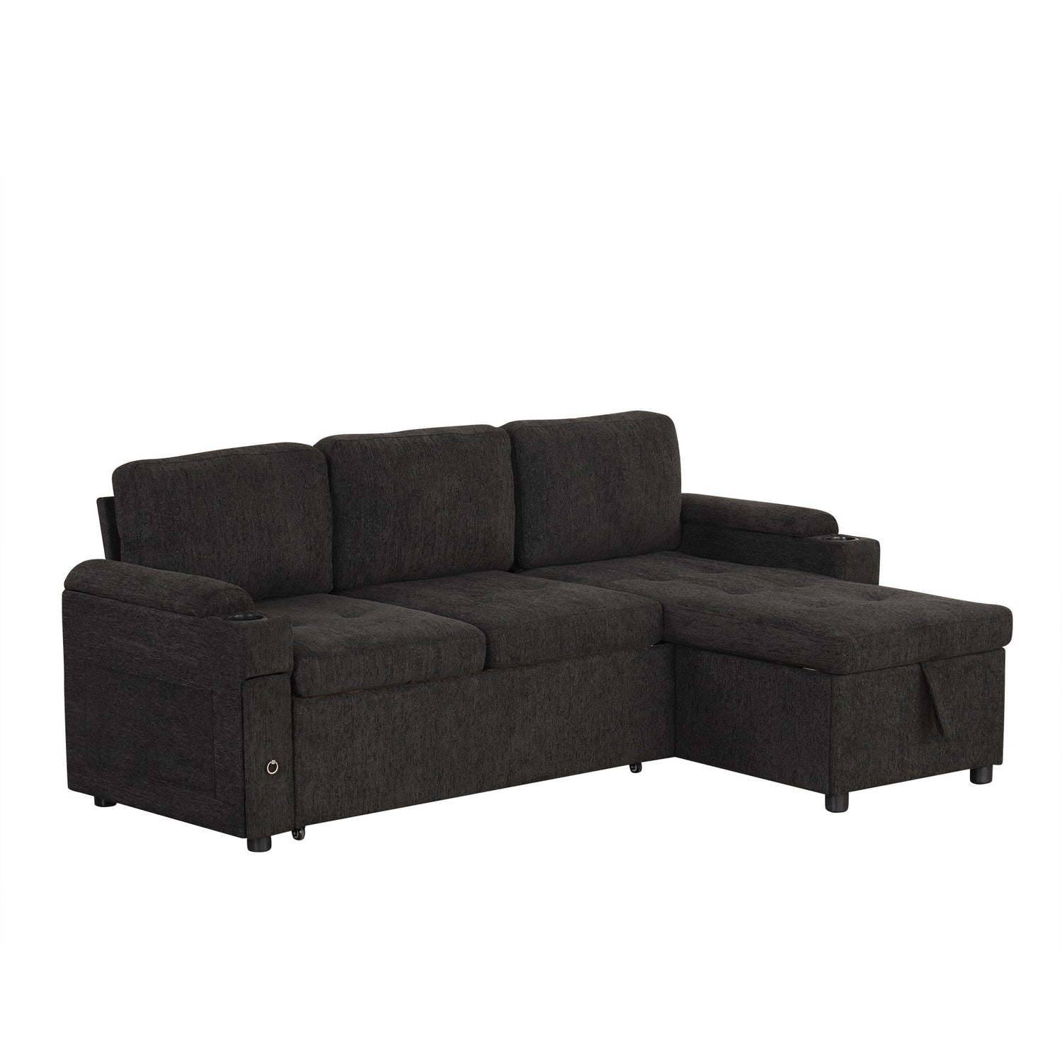 L Shaped Convertible Sofa Bed With Storage, Cup Holders, USB Ports Chenille - Gray