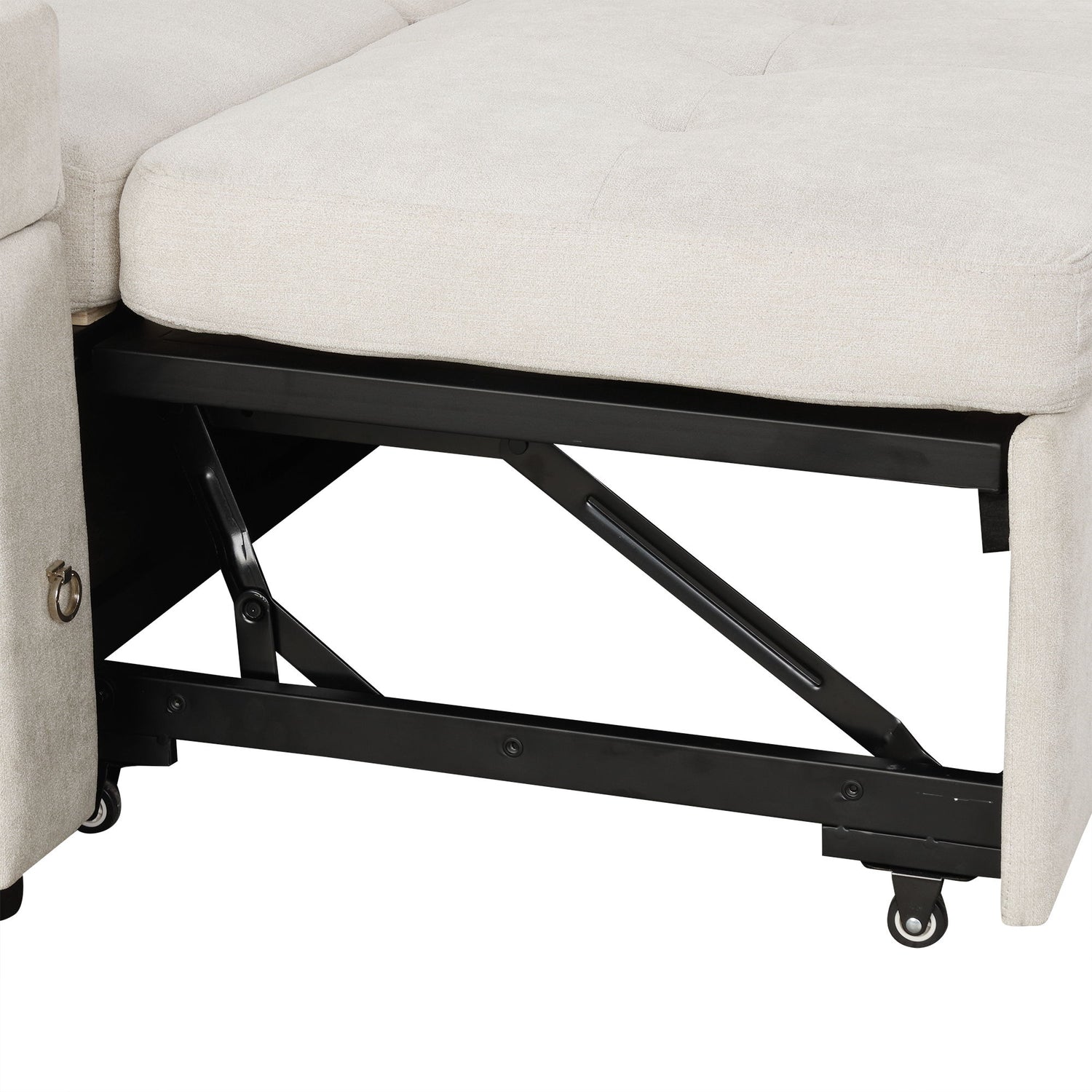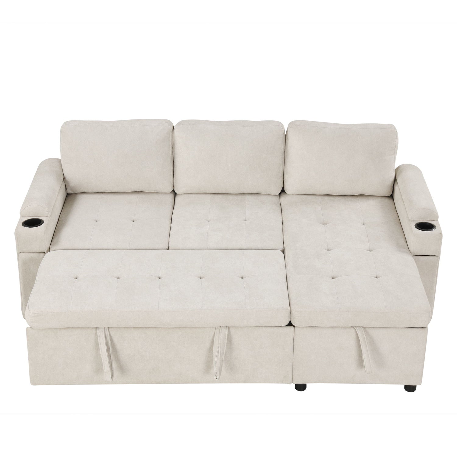 Convertible L Shaped Sofa Couch With Storage, Cup Holders, USB Ports - Beige