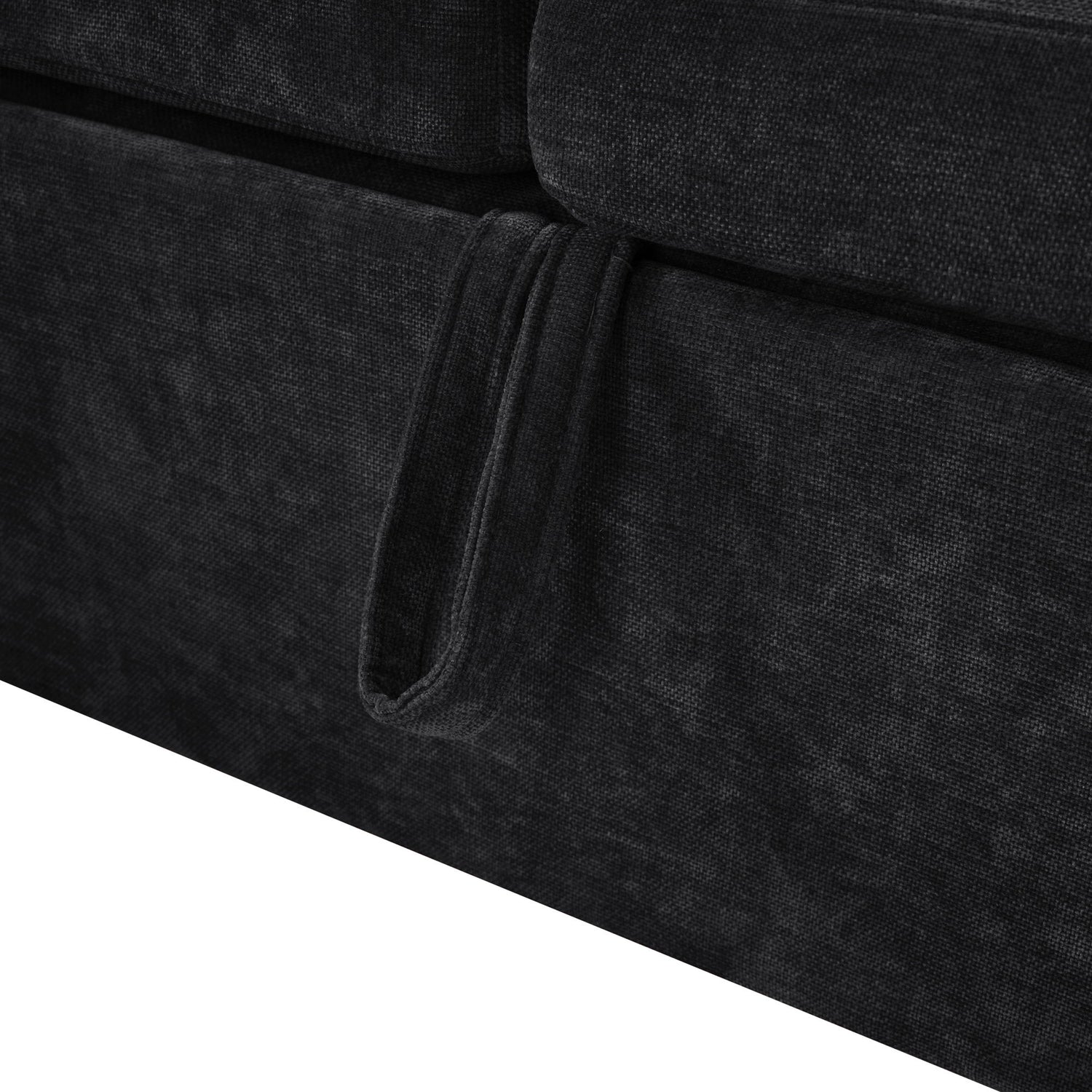 Modern L Shaped Sectional Sofa Bed With Hidden Storage Chenille Upholstery - Black