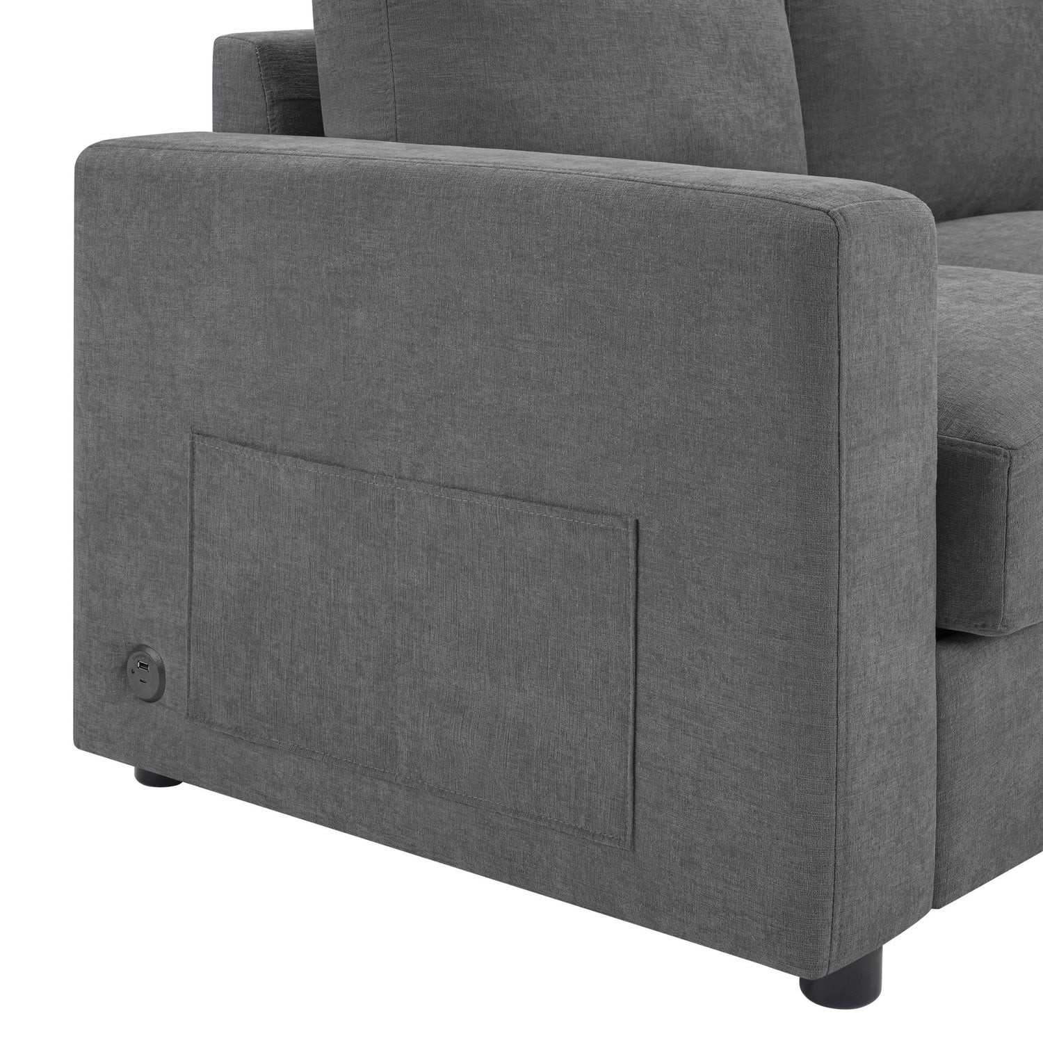 L Shaped Sectional Sofa With Curved Chaise, USB Ports, And Side Storage Pockets - Gray
