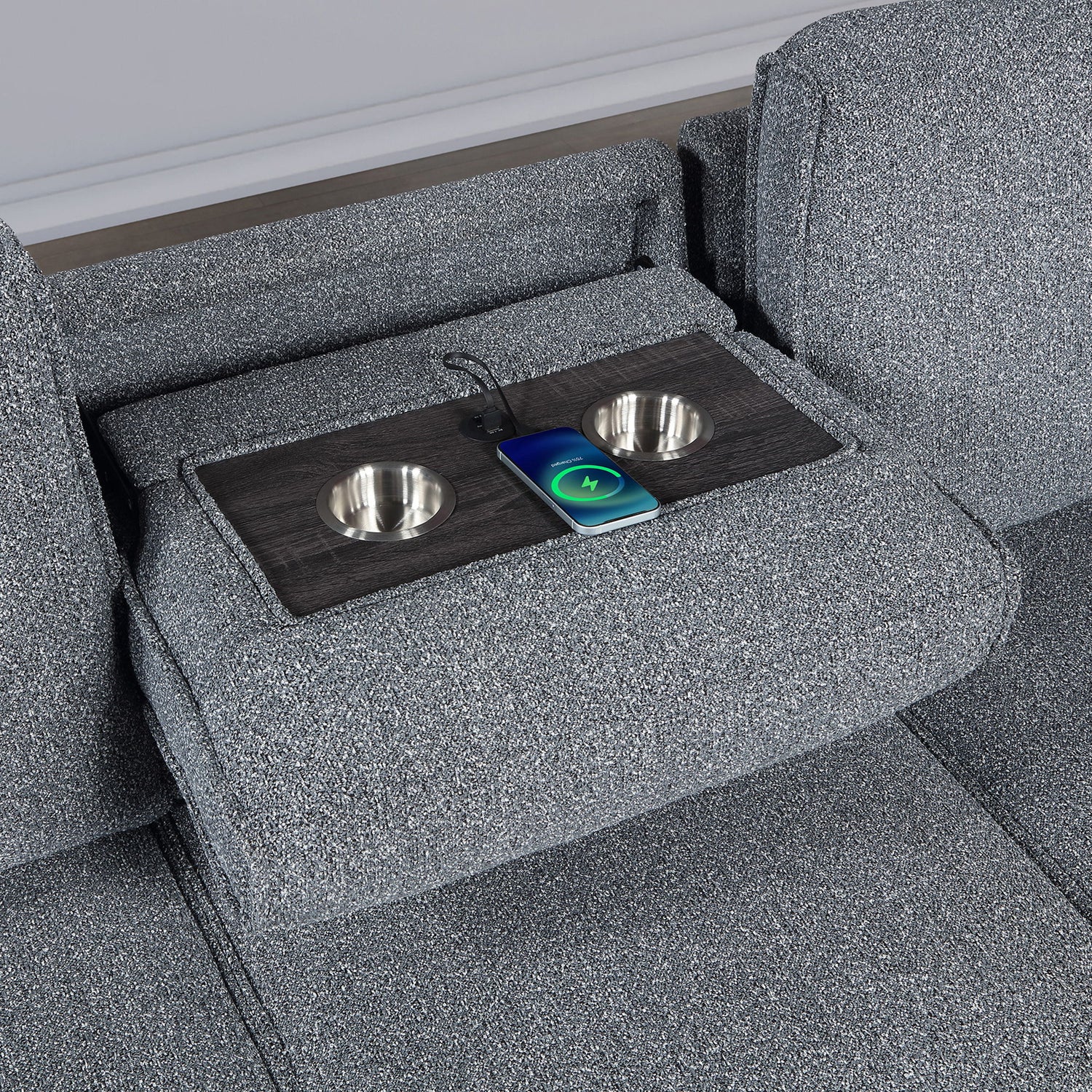 Rebecca - Sofa With Pull Out Bed, Storage Chaise, USB And Cup Holders - Dark Gray