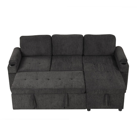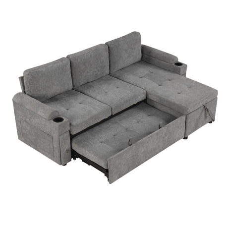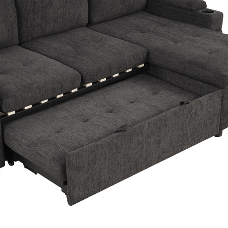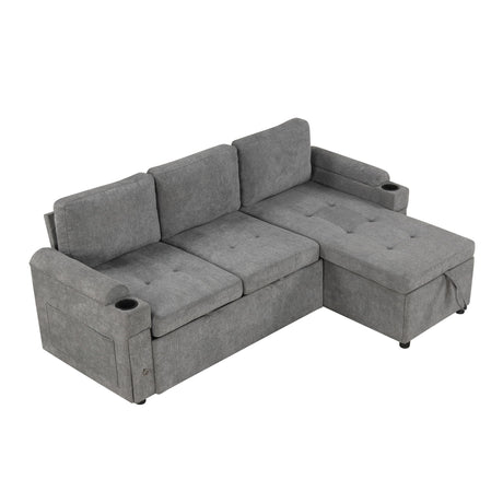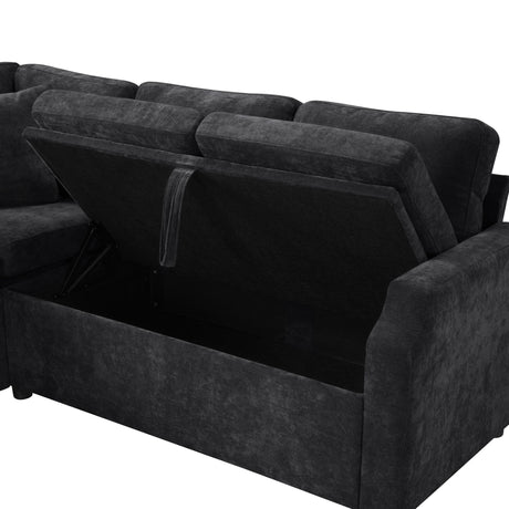 Modern L Shaped Sectional Sofa Bed With Hidden Storage Chenille Upholstery