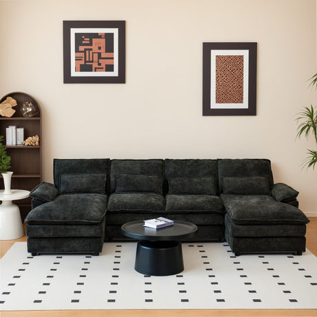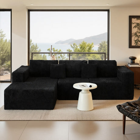 Modular U-Shaped Sectional Sofa, 4 Seater Chaise Lounge With Reversible Design Striped - Black