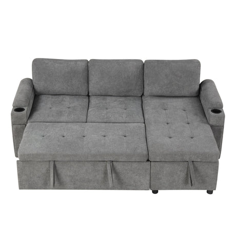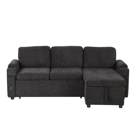 Convertible L Shaped Sofa Couch With Storage, Cup Holders, USB Ports
