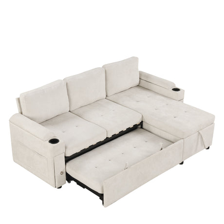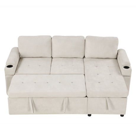 Gustavo - Sofa, Pull Out Bed, Storage Chaise, USB And Cup Holders - Beige