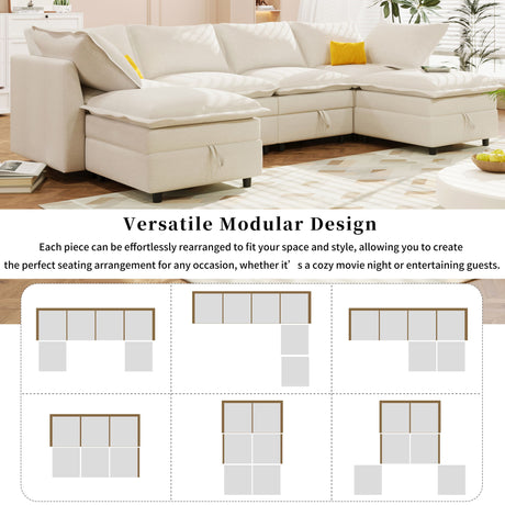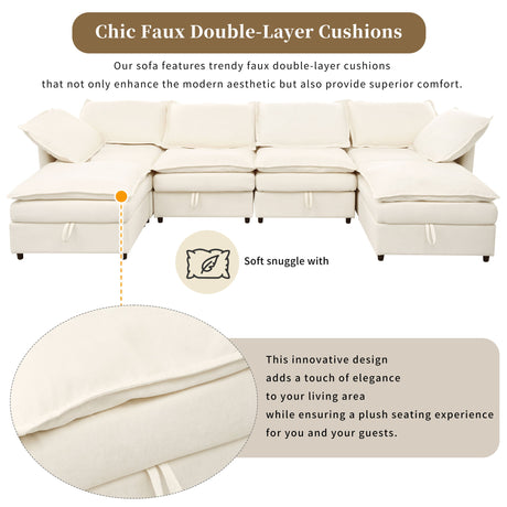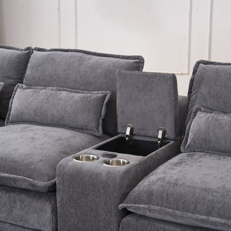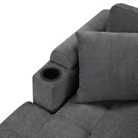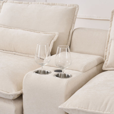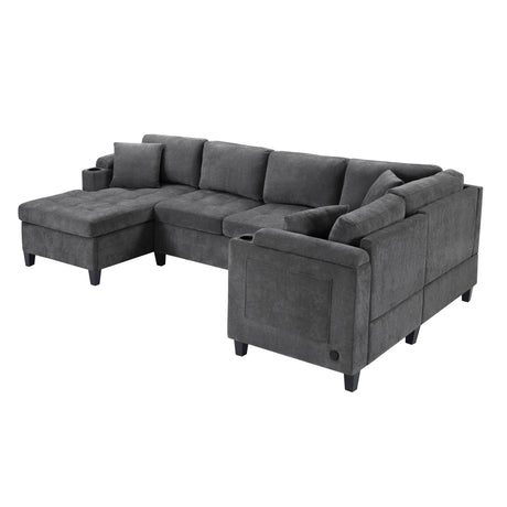 U Shaped Sectional Sofa, Corner Living Room Couch With Built In Cup Holders, Storage, USB Ports