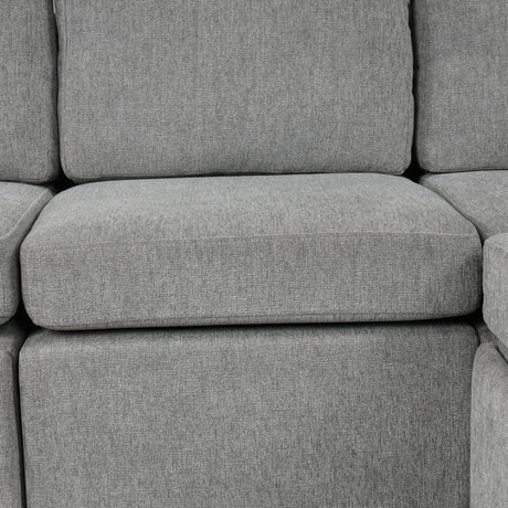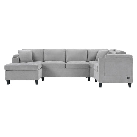 U Shaped Sofa With Console, Cupholders, USB Ports, 6 Seat, Bronzing Suede & Chenille