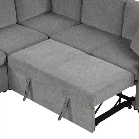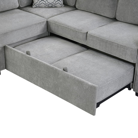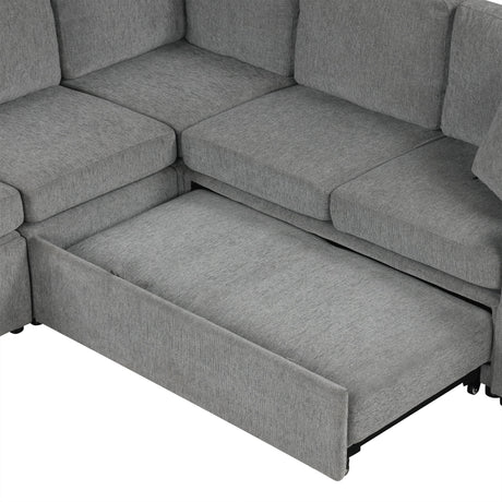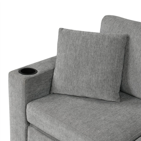 Modern U-Shaped Sectional Sofa Convertible Pull-Out Sofa Bed With USB Ports And Cup Holders