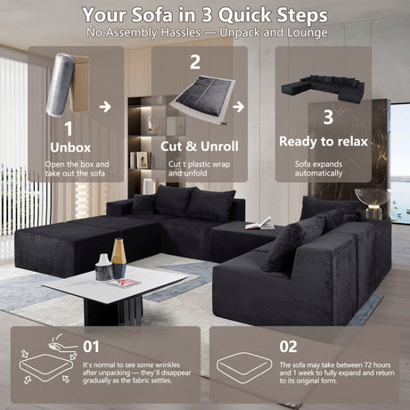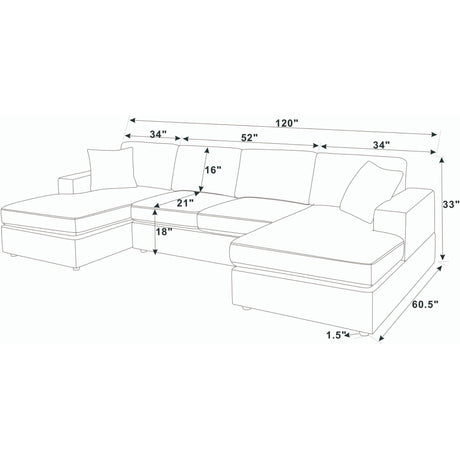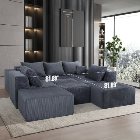 3 Piece Corduroy Double Chaise Sectional Sofa
